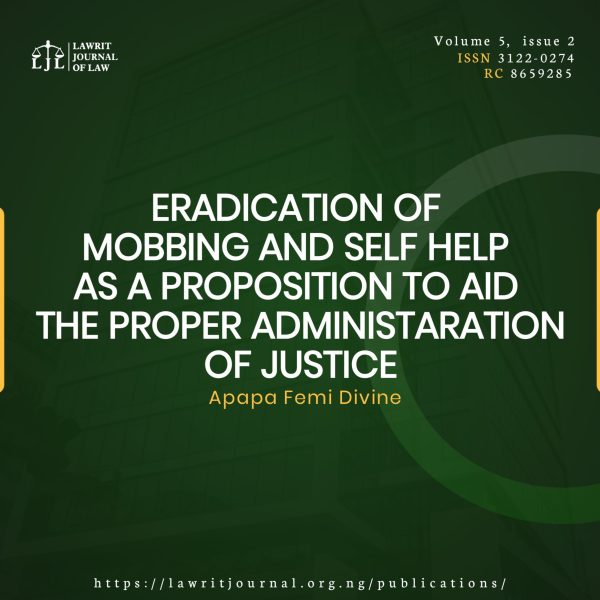 This paper investigates the persistent problem of mobbing and self-help in Nigeria, highlighting their detrimental impact on the administration of justice and the overall social order. It explores how these practices, often fueled by a lack of trust in the formal justice system and a desire for immediate retribution, undermine the rule of law and contribute to a climate of lawlessness. The paper analyzes the legal definitions of mobbing and self-help, demonstrating how they violate fundamental principles of due process and create a culture of impunity. It then proposes a multi-faceted approach to address the root causes of these behaviors, emphasizing the need for robust law enforcement, comprehensive public enlightenment campaigns, and community-based initiatives to promote a culture of respect for the law. Ultimately, the paper argues for a justice system that is accessible, equitable, and responsive to the needs of all citizens, fostering a society where mobbing and self-