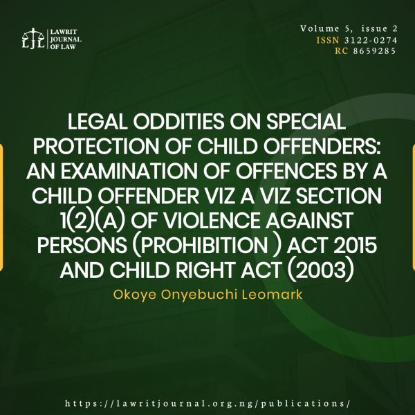 This work impact on the effect of juvenile sentencing under section 1(2)A) of the VAPP Act as a breach of the fundamental minimum age principles for criminal responsibility of a child offender. The intent of enacting laws and sections of law that deals on child offender is not to punish but to correct, through a special court, rehabilitation juvenile system and later on access their development on whether or not to be integrated back into the society. The regular(normal) court system lack the cares and sensitivity of handling child prosecution as it requires due protocol that will not hinder the development of a child later on in life; as a crime is not a product of an individual alone but a compound effect of both individual, environment and society. As such due care must be exercised by law while handling a child offender cases i.e. careful consideration of whether the child is a first-time offender, psychological and behavioral status among various factors. This secure the interest of the society, law and best interest of a child offenders in other to meet the virtue of section 1 of the Child Rights Act (2003) which the VAPP Act breached and will be examined within this work.