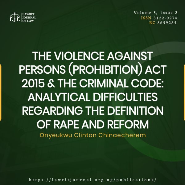 The definition of aggravated sexual assault as contained in the Violence Against Persons (Prohibition) Act 2015 raises major concerns. Its broad definition of rape creates absurdity and interpretational problems in the administration of justice. This article aims at juxtaposing the definition of rape as contained in the Violence Against Persons (Prohibition) Act, hereinafter referred to as VAPPA, and the definition contained in the Criminal Code which is applicable in southern Nigeria. This article will also highlight the major problems arising from the definition of the VAPPA and the criminal code. However, emphasis will be placed on the VAPPA. A reform will be proposed thereafter.